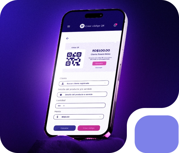 • Dinámico: Genera un código con el monto y la descripción, haciendo que el pago sea tan sencillo como escanear y confirmar. ¡Conecta con tus clientes de manera innovadora!
